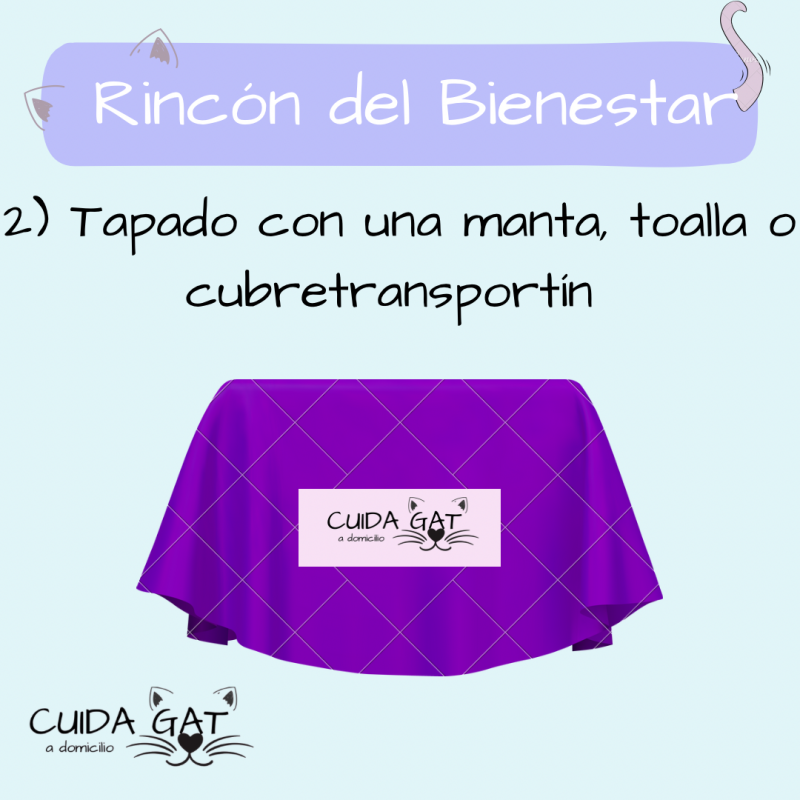 Los transportines cuentan con aperturas de ventilación en laterales y fondo, además de en la puerta. Esto hace que cuando el gato se encuentre en su interior, se sienta inseguro porque no puede controlar por donde le viene la amenaza. Si tapamos visualmente con una tela los laterales y el fondo, haremos un efecto cueva donde el gato controlará la amenaza que ve de frente, lo que hará que disminuya la ansiedad del encierro.